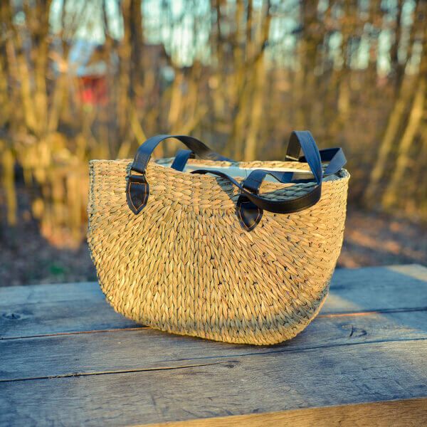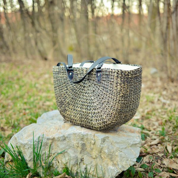 Na notranjem robu je blago, ki ga lahko stisnemo z vrvico in tako zapremo cekar.
