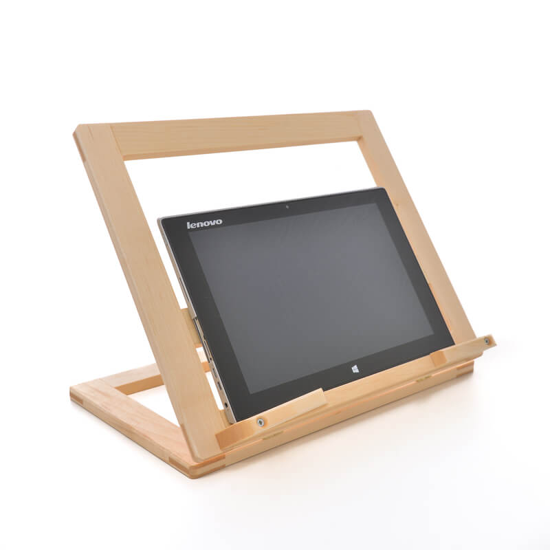 S svojimi dimenzijami 350×280 mm, to praktično leseno stojalo zagotavlja dovolj prostora, obenem pa je lahkotno in priročno za branje ali delo, tudi med počitkom v postelji ali v vašem najljubšem bivalnem kotičku.