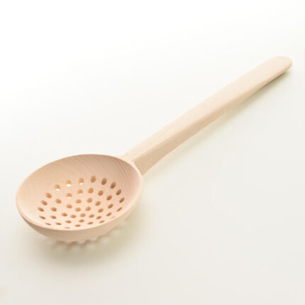 Bukova zajemalka z luknjami omogoča enostavno odcejanje hrane, brez polivanja ali nereda.